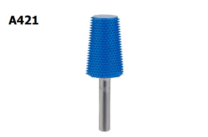A421 5% Taper Cylinder: Coarse Grit (blue) 3/4” dia. at base x 1-1/4” Length; 1/4” shank
