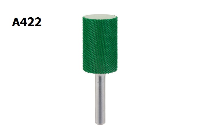 A422 Cylinder: Fine Grit (green) 3/4” dia. x 1-1/4” Length; 1/4” shank