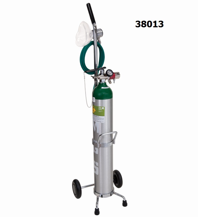 Portable Oxygen System (38010) Includes: Demand Valve with O2 Q/C Fitting, Adult Full Face Mask, Cylinder Wrench, and Cart (gas cylinder not included).