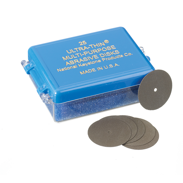 Keystone Industries Ultra-thin Abrasive Discs have the exceptional combination of thinness, strength and cutting qualities, which have made them an indispensable industry standard. These abrasives are used for fine cutting and finishing on porcelain interproximals and margins. The pure fine silicon carbide abrasive is a unique formulation that will not discolor porcelain. Best used between 10,000 and 12,000 rpm.